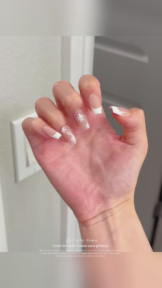 Clean and buff your natural nails. Select the perfect size for each finger. Apply adhesive tab or glue (depending on your wear preference). Press firmly for 15 seconds and admire...