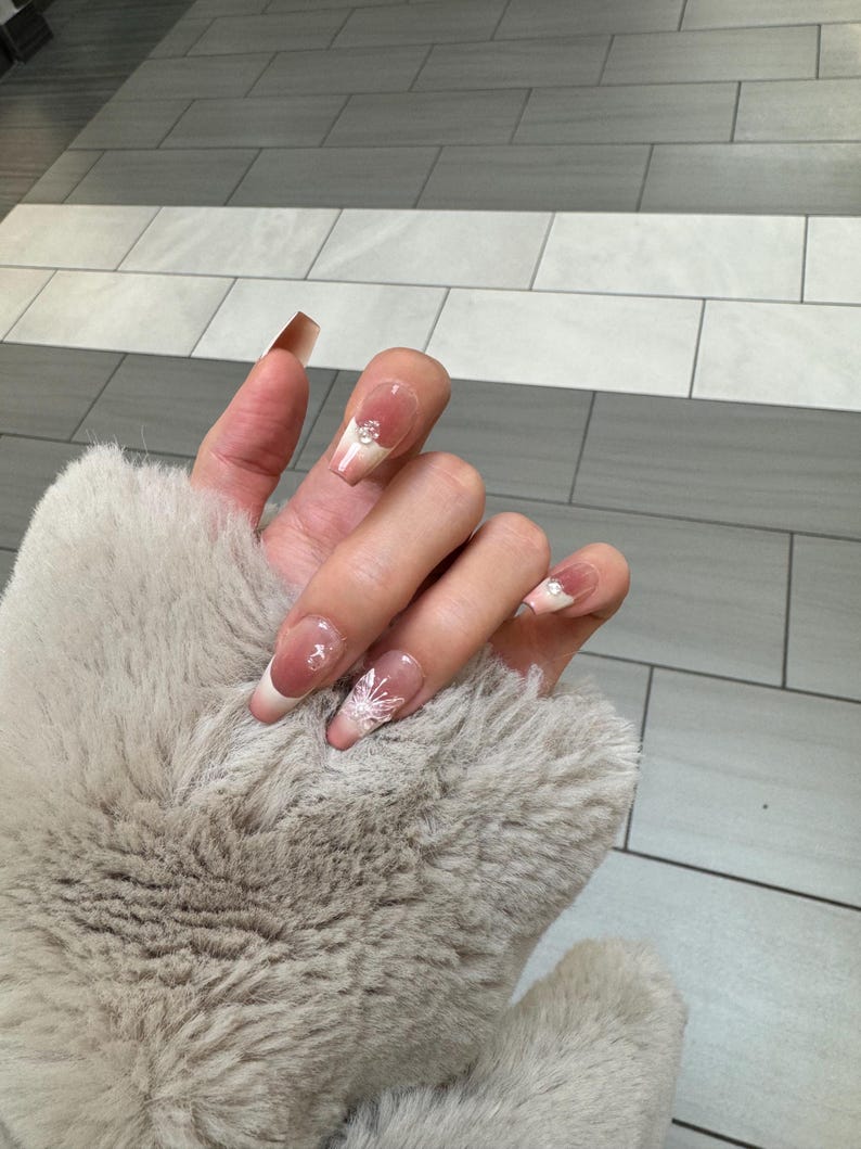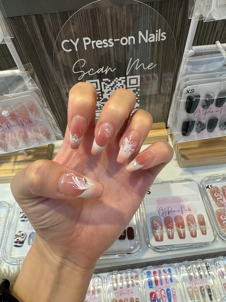 Butterfly Lovers Ombre Medium Long Coffin Salon-quality Reusable Handmade Press-on Nails