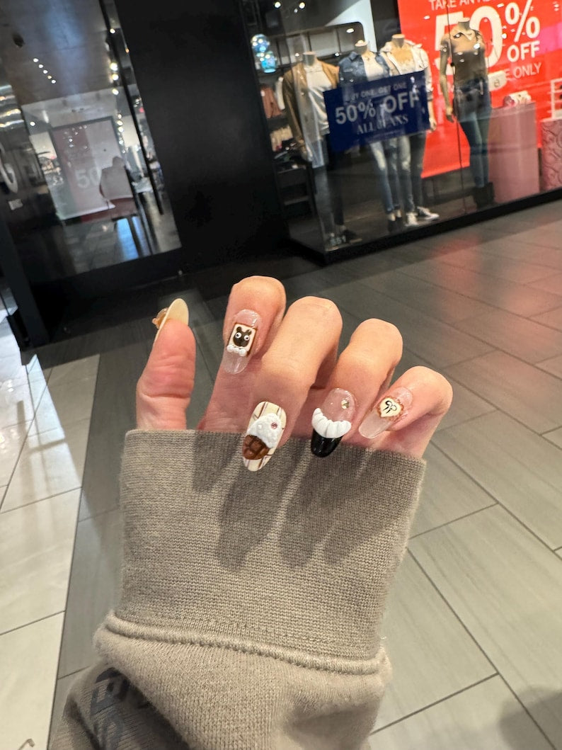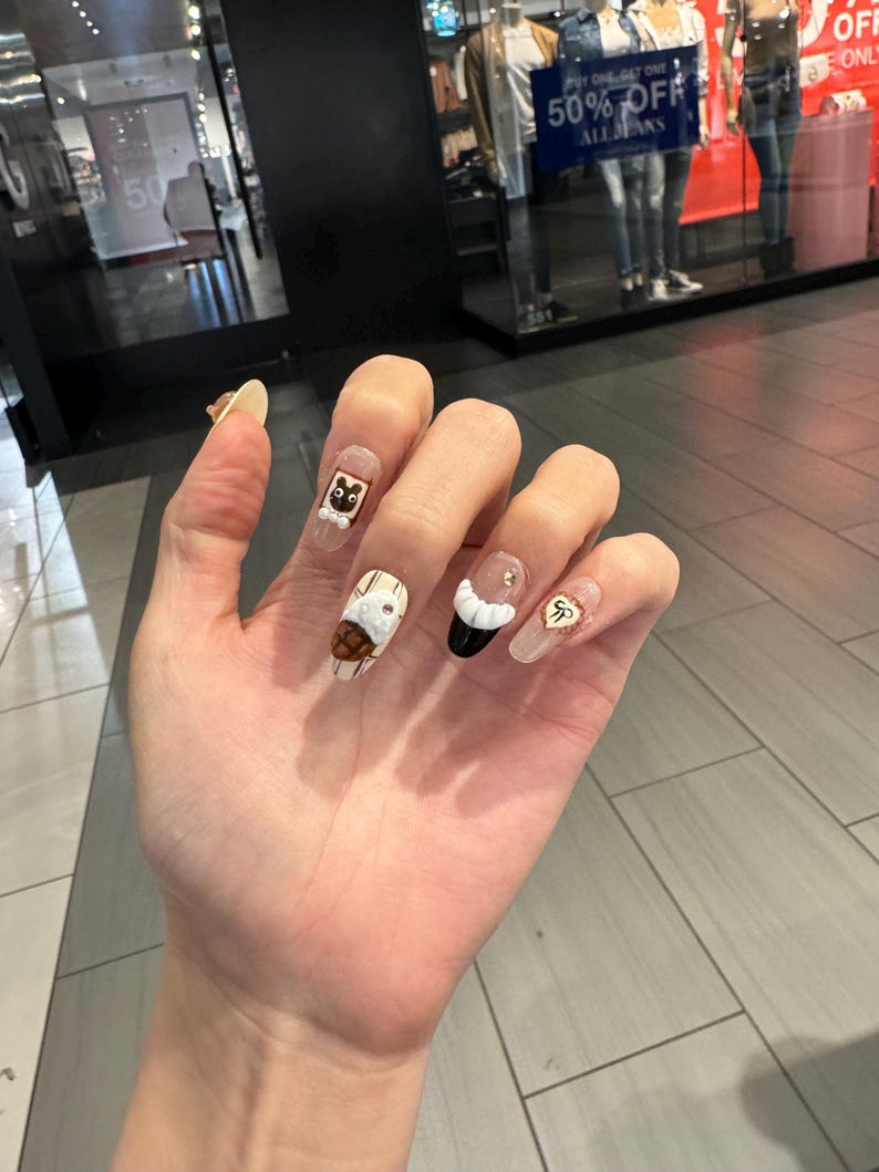 Capybara Ice Cream Cartoon Brown Medium Oval Premium Salon-quality Reusable Handmade Press-on Nail