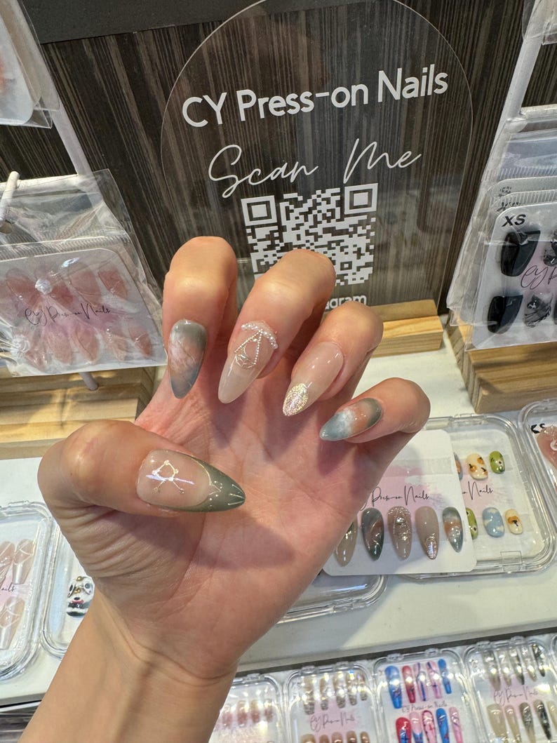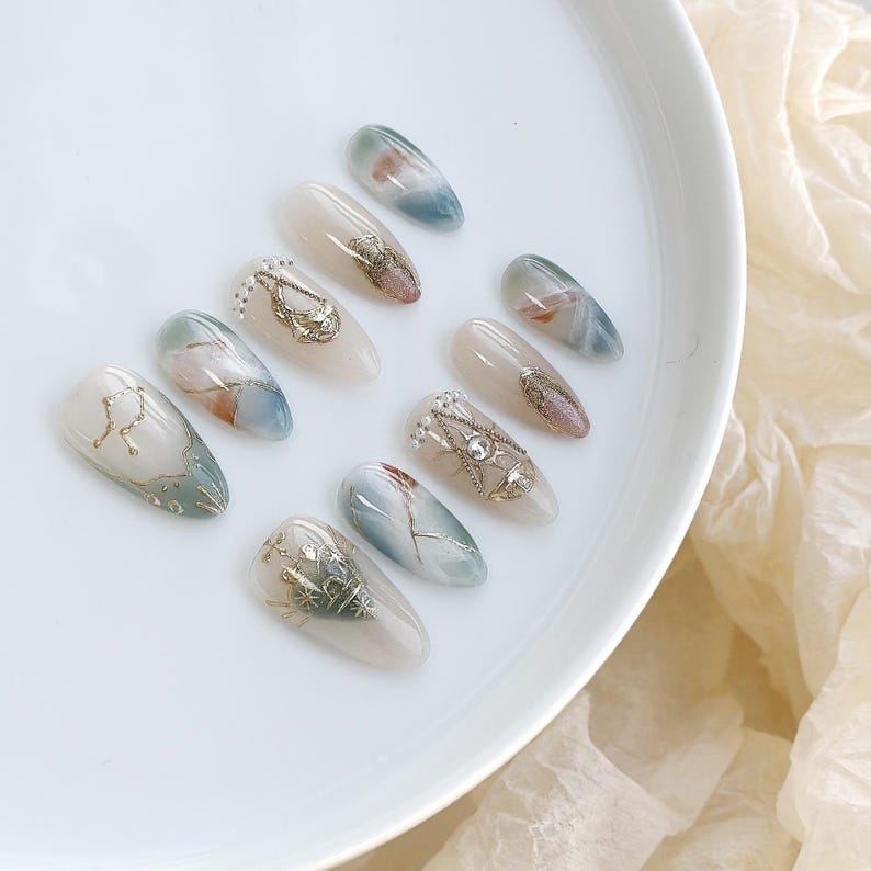 Constellation Sign Athenian Series Ombre Gold-plating Libra Medium Almond Salon-quality Reusable Handmade Press-on Nails
