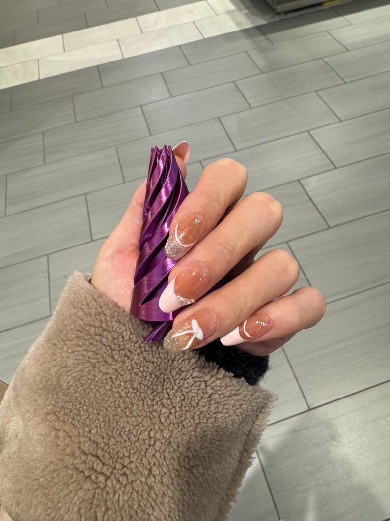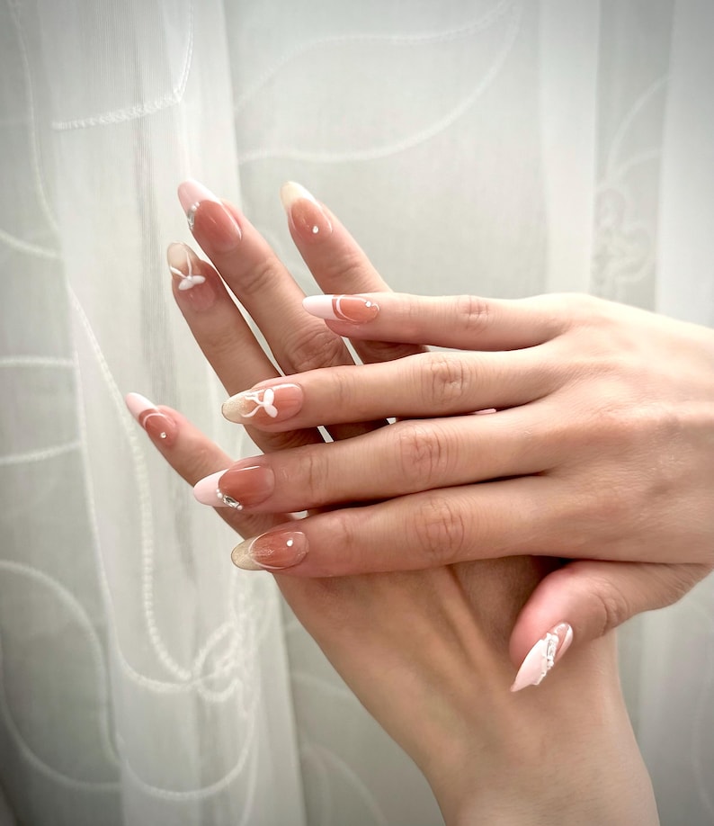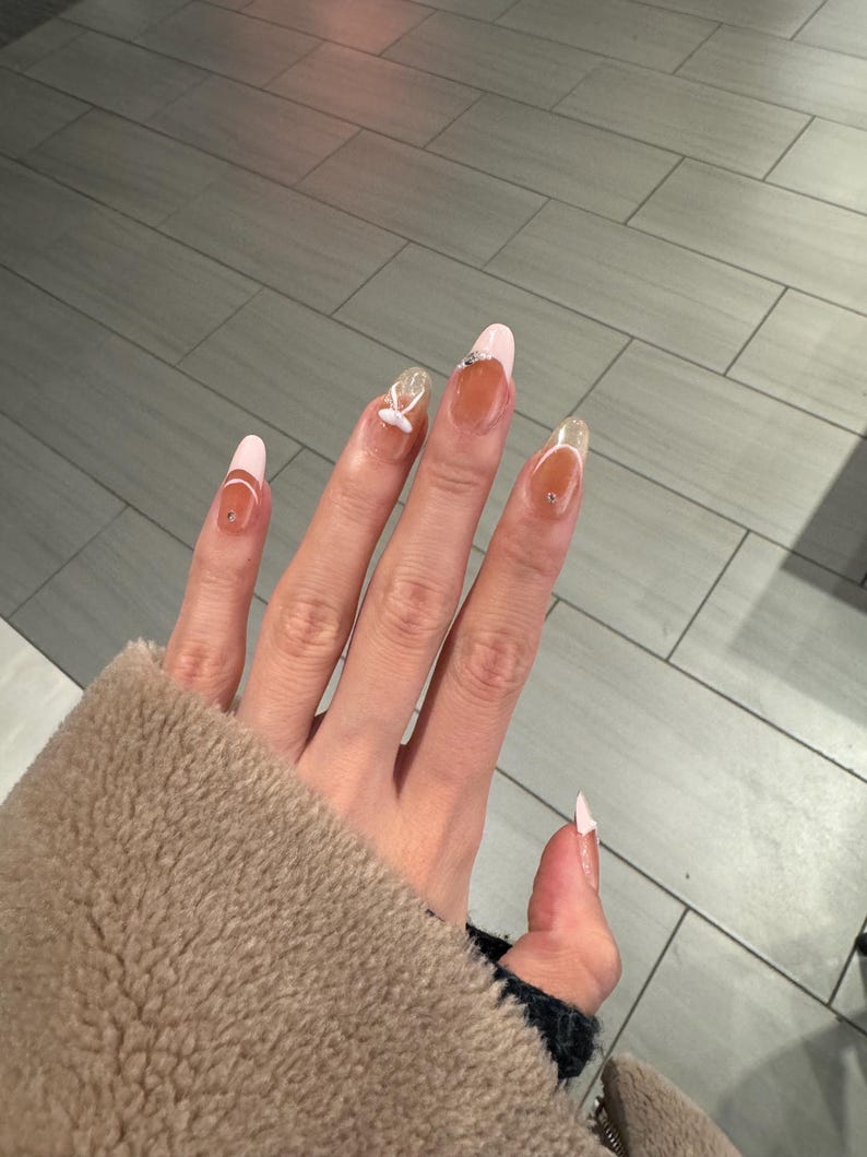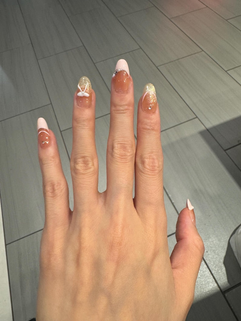 Hand-painting Pink French tips Gold Cat Eye with Bows Short Medium Oval shape Salon-quality Reusable Handmade Press-on Nails
