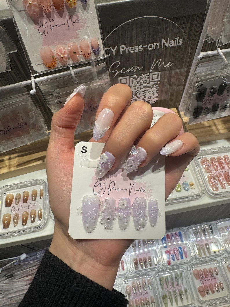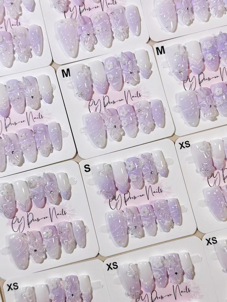 3D Spring Floral & Butterfly Nails | Medium Almond | Reusable Handmade Salon-Quality Press-Ons + Free Glue