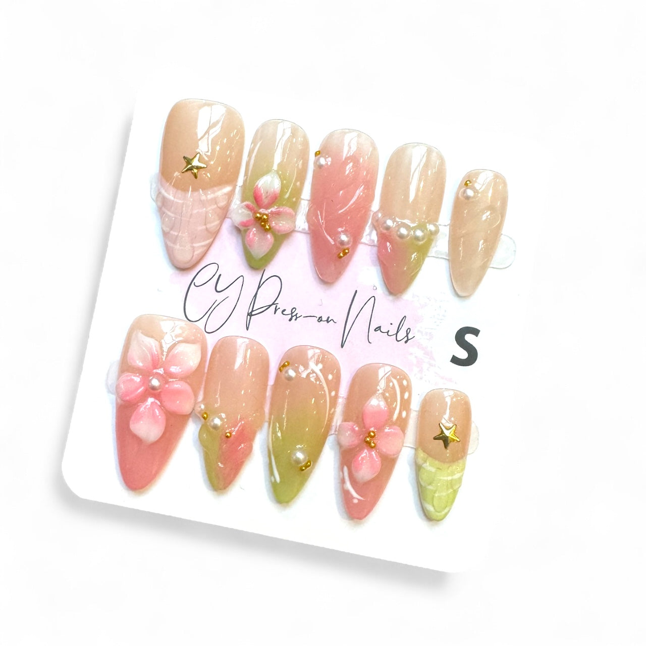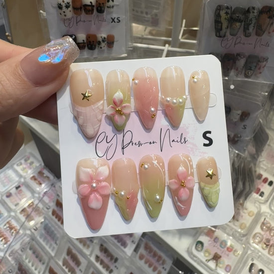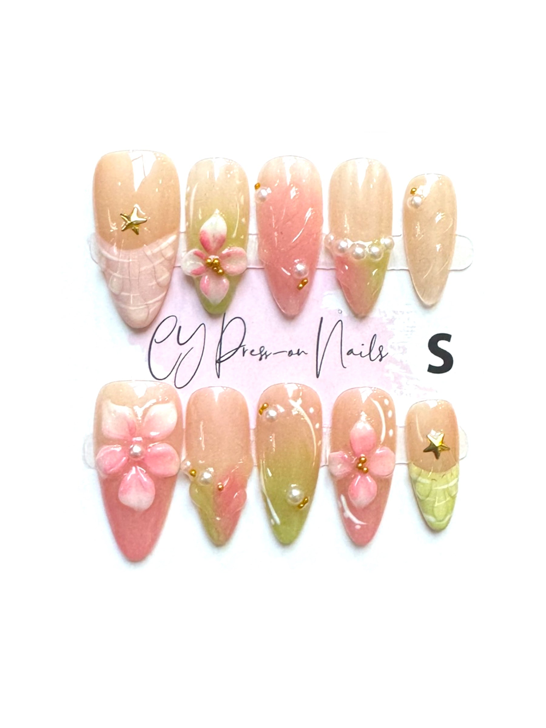Gold-painting Tropical Flowers with Star and Pearls Beach Style